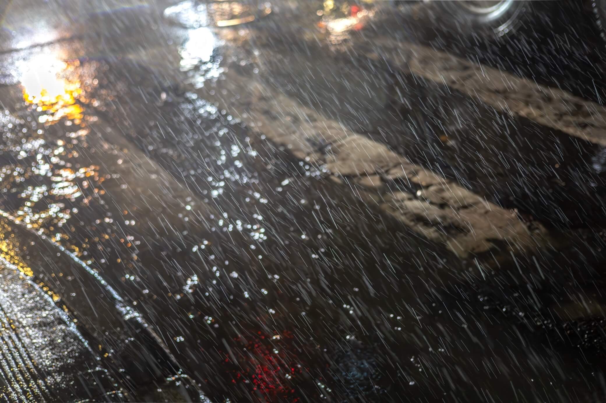 Rain transforms asphalt into script, each streak and splash marking time rather than place. Headlights scatter into fragments, and the street becomes a page in motion.